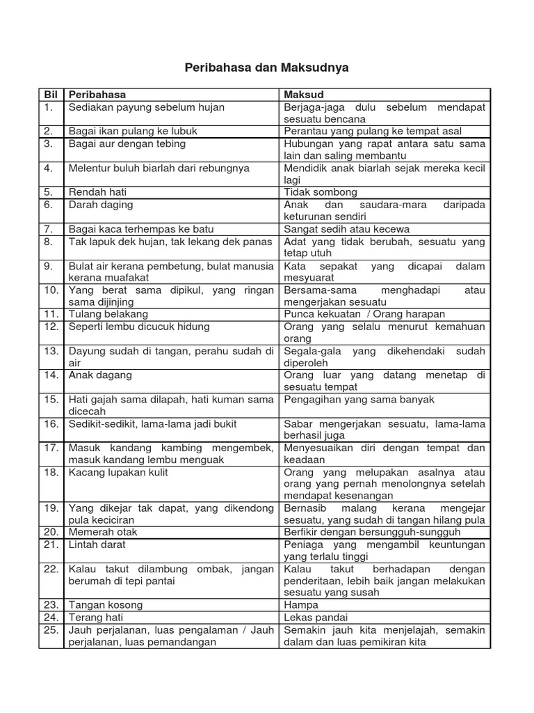 Peribahasa Dan Maksud Senarai Peribahasa Melayu Dan Maksud Sekolah Rendah Menengah
